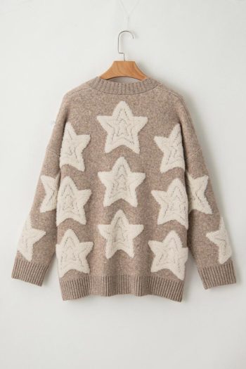 Mujer | Cárdigan Delantero Con Botones Y Bolsillos Con Estampado De Estrellas Caqui