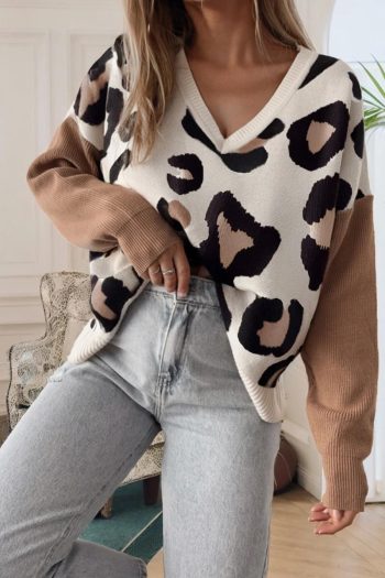 Mujer | Suéter Con Cuello En V, Mangas Patchwork, Estampado De Leopardo Y Bloques De Color Jet Stream