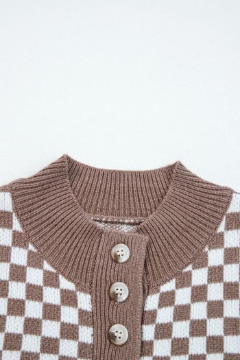 Mujer | Suéter De Cuello Abotonado Con Ribete En Contraste A Cuadros Marrón Oscuro