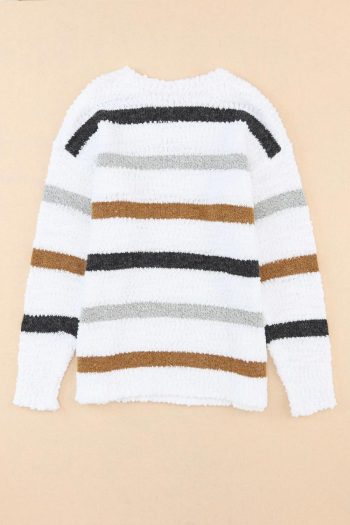 Mujer | Suéter Suelto Con Hombros Caídos Y Cuello Redondo A Rayas Marrón