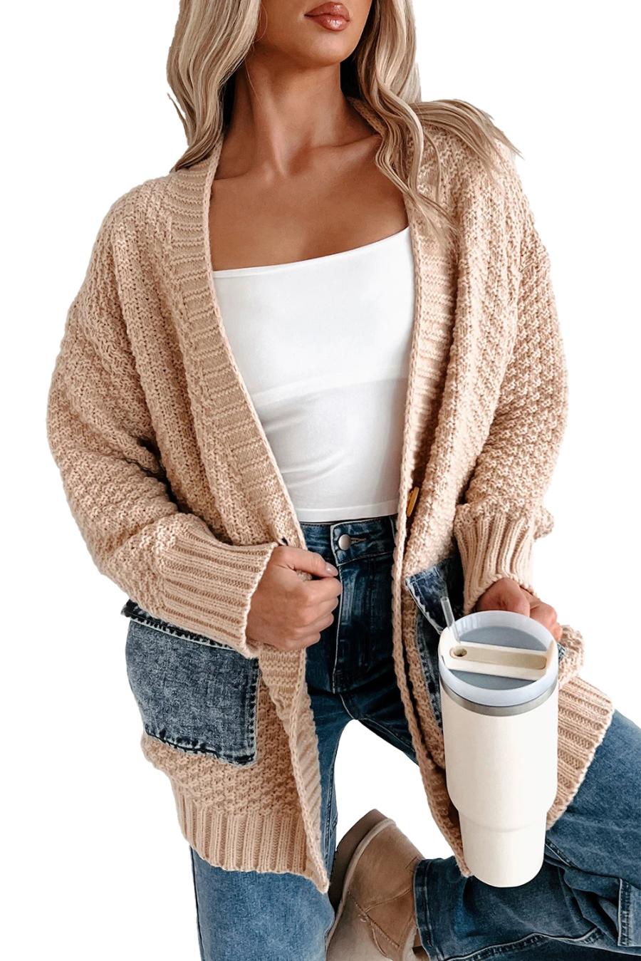 Mujer | Cárdigan De Punto Con Bolsillo De Mezclilla Y Patchwork, De Color Gris Humo, Con Frente Abierto