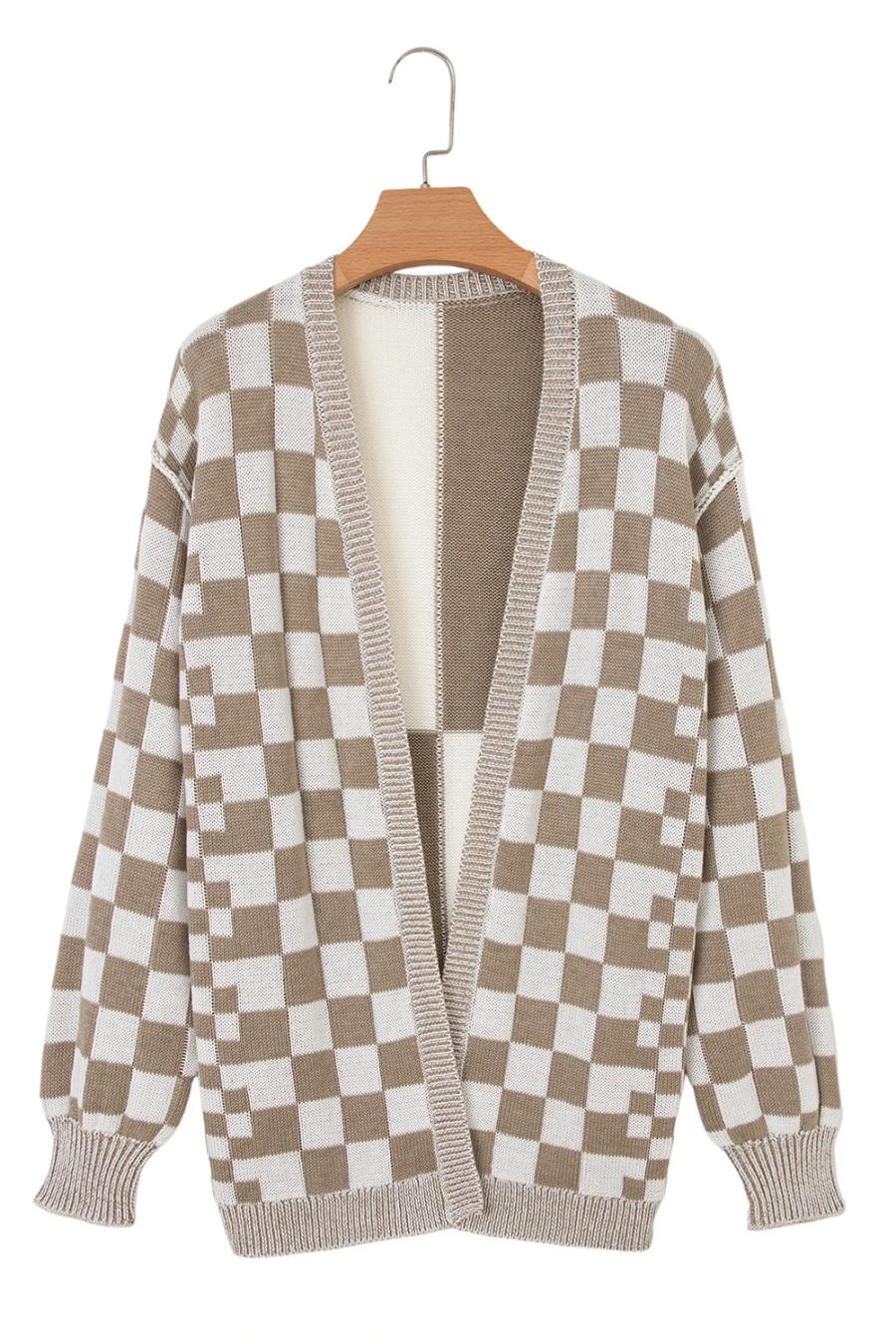 - Disfruta del estilo relajado e informal de este cárdigan, con un diseño de patchwork a cuadros que añade un toque moderno a tu guardarropa.