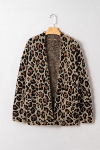 Mujer | Cárdigan Peludo Con Frente Abierto Y Estampado De Leopardo Marrón