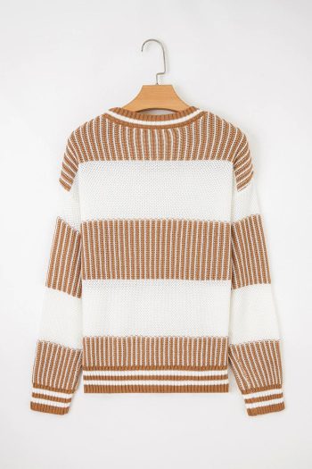 - El exclusivo diseño de bloques de colores agrega un toque moderno al patrón de rayas clásico, haciendo de este suéter una pieza destacada en cualquier guardarropa.