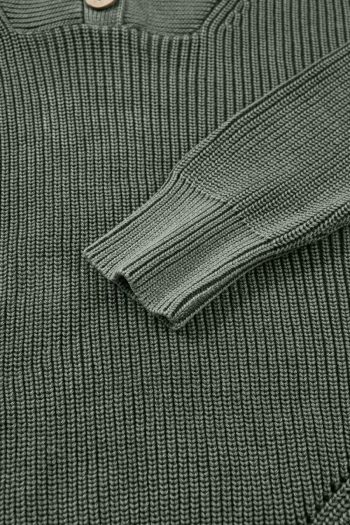 - El diseño de punto acanalado agrega textura y estilo al suéter.