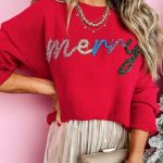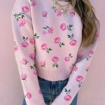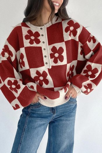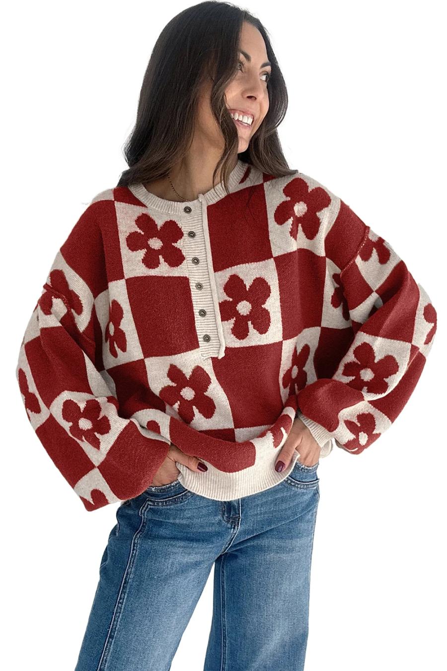 Mujer | Suéter Henley A Cuadros Con Bloques De Color Y Flores De Dalia Roja