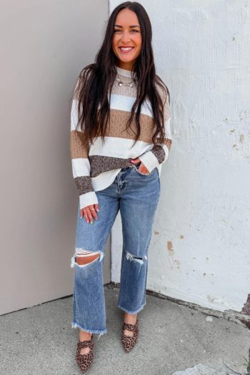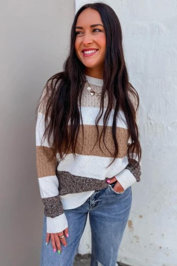 • The blend of textures adds depth and interest to this sweater, while the colorblock design creates a modern and eye-catching look.